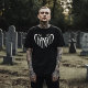 O design nesta camiseta com a palavra Mudado e os olhos de lobo definitivamente dão dicas de vibrações de Lobisomem.
