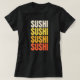 Simples design de texto colorido com o texto "Sushi, Sushi, Sushi, Sushi" em cor bege, amarela, laranja e vermelha