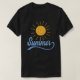 Sol, estilo caligrafia de verão, camiseta preta de design para homens. Esta design de verão é ideal para suas férias na praia. Você pode editar este design para alterar a cor de qualquer um dos elementos do design, se quiser.