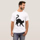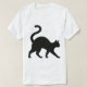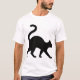 Elegante silhueta de gato preto mostrando uma caminhada graciosa de perfil, com as costas arqueadas e o rabo levantado em uma curva suave em S, para um visual sofisticado e minimalista. Este vetor de alto contraste é perfeito para camisetas, adesivos, canecas e pôsteres, ideal para amantes de gatos que apreciam estilo sofisticado e versátil.