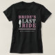 Celebre a última viagem da noiva com esta camisa de despedida de solteira com tema de cowgirl ocidental. Com um texto estiloso no estilo de salão e uma paleta de cores rosa, preto e branco, é uma escolha divertida para uma noite de garotas ou fim de semana de despedida de solteira. Personalize com o nome da noiva e detalhes do evento para um presente personalizado!