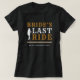 Celebre a última viagem da noiva com esta camisa de despedida de solteira com tema cowgirl ocidental. Com um texto estiloso no estilo salão e uma paleta de cores marrom, preto e branco, é uma escolha divertida para uma noite de garotas ou fim de semana de despedida de solteira. Personalize com o nome da noiva e detalhes do evento para um presente personalizado!