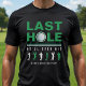 Celebre o último swing do noivo antes do anel com esta camisa de despedida de solteiro temática de golfe verde, preta e branca. Projetada com a frase "Último Buraco Que Ele Jamais Atingirá", este design divertido e ousado é perfeito para uma saída de golfe ou fim de semana de despedida de solteiro. Ótimo para o noivo e sua turma, esta camisa adiciona um toque divertido à celebração. Personalize com o nome do noivo e detalhes do evento para um souvenir personalizado!