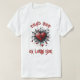 Camiseta Determinado a Te Amar. © Dark Heart Desires. Esta camiseta gótica do Dia dos Namorados tem um coração dentro de uma teia de aranha e as palavras Determinado a Te Amar nela.