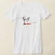 "Deus é o amor" (1 John 4:8). A diversão floresce e os corações embelezam o texto de uma design feminina. Escolha sua cor e estilo de camisa favoritos para torná-la sua.