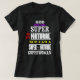 Camiseta cristã engraçada com texto branco, amarelo e vermelho em uma camiseta preta com palavras, "Deus colocou Sua Super em minha natureza e me fez uma super-mulher sobrenatural. Quando o Espírito Santo de Deus vem ao vivo, nós somos capazes de fazer coisas fora da nossa habilidade natural.