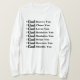 Essa camiseta de manga longa das mulheres permite que você descubra esta camisa cristã inspirada na fé, apresentando poderosas afirmações de amor, restauração e proteção de Deus. Perfeito por compartilhar sua fé com estilo! Essa camiseta comprida é confortável, casual e flexível, feita de 6,0 oz, algodão pré-encolhido 100%, com agulha dupla coalhada em baixo e mangas para durabilidade extra tem uma imagem correspondente menor na parte de trás de nossa ajustado camisetas e veste bem em qualquer um e em todos.