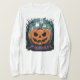 Entre no espírito do Dia das Bruxas com esta camiseta engraçada e assustadora que apresenta uma abóbora com um rosto esquelético sentado em um toco. O fundo mostra uma floresta assombrada com fantasmas flutuantes, fazer este é o perfeito design festivo para amantes do Halloween. Esta design adiciona uma torção divertida e divertida ao seu guarda-roupa de Halloween. Quer você esteja se vestindo ou ficando casual, esta camisa certamente será um começo de conversa!