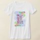 T-Shirt floral brilhante, "Dia de as mães", com flores, corações e texto "Incrível, Adorável, Forte, Feliz, Inútil, Graciosa, Mãe". É tudo sobre a MÃE!
