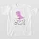 T-shirt, camisolas, camisas dos miúdos, roupa do bebê e mais. O design inclui a cabeça dos desenhos animados (menina) e o dinossauro cor-de-rosa criado pelo artista Peter Apel da música da família. Tamanhos da criança toda a maneira até o adulto. Selecione de muitos estilos da camisa e cores do tecido!