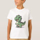 Esta é uma camiseta infantil com um impressão de dinossauro fofo. Dê ao seu filho um novo amigo dino!