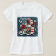 This initial 'B' is special for its bold blend of patriotic Americana and traditional floral design. The scrolling letter form is filled with a cracked, vintage American flag pattern, giving it a unique, rustic appeal. It is richly decorated with vibrant red roses and peaceful white daisies. The design is perfect for personalized patriotic apparel, military gifts, or vintage graphic prints.