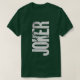 Show your appreciation for the Clown Prince of Crime with this bold JOKER graphic tee. The design features the word "JOKER" printed vertically in a distressed, grungy font, with a classic image of the villain subtly woven into the lettering. Set against a deep, dark green fabric, this shirt offers a subtle yet striking look that's perfect for comic book fans, movie enthusiasts, and anyone who loves classic DC Comics villains