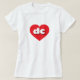 Esta t-shirt tem um coração vermelho vibrante contendo as letras maiúsculas, brancas, redondas, dc, uma abreviatura lúdica para o Distrito de Colúmbia.