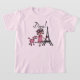 T-shirt da diva, bodysuits, canecas, bolsas, cartões, etiquetas, correntes chaves, travesseiros, pulsos de disparo de parede, e muito mais com um design bonito da diva que caracteriza uma menina de cabelo preta em um chapéu e em um vestido cor-de-rosa com sua caniche cor-de-rosa perto da torre Eiffel!