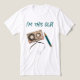 Esta camiseta engraçada apresenta uma fita cassete com parte da fita puxada para fora e um lápis para consertá-la. Crédito da foto: Mimmo Sigismondi, 2023.