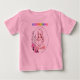 Camiseta de bebê menina adorável em rosa suave com um desenho animado fofo de uma menina sentada lendo dentro de um círculo de flores.