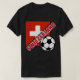 Bandeira da suiça com bola de futebol. Elogio em sua equipe de futebol favorita de Suisse este ano e cada ano! T-shirt, hoodies, e roupa do futebol do mundo para adultos e crianças. Uma bola de futebol grande, a bandeira suíça, e tudo feito em cores brilhantes. Raiz para sua equipe de futebol! Adicione o texto, também, se você gosta, como uma data. Disponível em t-shirt, camisetas orgânicas, hoodies, sacolas, sua, as canecas de viagem, canecas cerâmicas, botões, chaveiro, e mais.