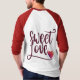 Experimente o conforto e estilo com esta camiseta raglan de manga 3/4 única para homens. Apresentando um símbolo vermelho arrojado na frente e um design de texto 'Amor doce' emocionante nas costas, esta camisa é perfeita para um aspecto relaxado e na moda. Feito com materiais macios e respiráveis, é ideal para um clima mais quente. Mostre seu amor com esta peça única e moda.