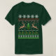 Compartilhe algumas risadas neste feriado com este engraçado "Suéter de Natal Feio" em vermelho festivo, verde, branco e marrom. Duas renas saltando, entre uma árvore de férias, linhas horizontais de flocos de neve brancos e outros padrões decorativos de ricos. Esta divertida aparência de modelo de suéter cruzado é excelente de trazer memórias de presentes de Natal retrógrados e artesanatos feitos à mão. Todos os Designs Copyright © www.zazzle.com/christmascardshop