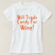 Trocará doces para o vinho! Dizer do Dia das Bruxas engraçado/slogan. Camisa engraçada do traje para o partido do Dia das Bruxas. Letra/pia batismal/texto alaranjados. Inteiramente customizável.