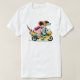 Camiseta Dois Raptores De Cartoon Andando Um Patinete De Mo