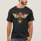 Shining Unholy Vampire Dourada Gótica Cross T-Shirt é uma elaborada e ornamentado cruz-cristã gótica de aço escuro e ouro enfeitiçada com um gleaming de joias vermelhas e um par de asas de morcegos vermelhos e asas de anjo ouro, perfeita para amantes de cruzes cristãs ornamentados, crucifixos e símbolos esotéricos.
