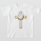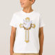 Pomba branca, coroa de espinhos e ouro e Cruz branca em presentes e roupa