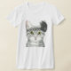 Esta impressão de aquarela apresenta um gato de mesa adornado com rendas e penas|