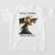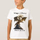 Um dragão de ouro feroz a crescer com a lua de cheio no fundo. Um slogan "Asas de poder, coração de fogo" rodeia a imagem. Uma camiseta excelente para uma criança que gosta de fantasia. Contém conteúdo generativo.