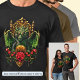 Camiseta Dragão Verde no Trono Dourado com Flores Vermelhas