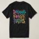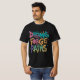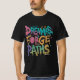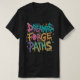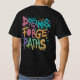 Um design de camiseta colorido com a declaração ousada "Dreamers Forge Paths" em uma vibrante fonte multicolorida.