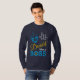 Diversão, na moda DREIDEL COMO Uma Camisa-T de Mancha Chanucá Longa, projetada com sonho azul e tipografia azul, amarela e branca. No canto superior direito, você pode ler os nomes dos quatro lados do sonho em um formato de quebra-cabeça (HEI pode ser alterado para HEY ou HAY, se necessário). Dentro O do BOSS é uma pequena estrela de David. Esta pode ser sua camisa feia e divertida de Hanukkah para vestir para que você possa mostrar sua experiência em estilo durante a temporada de Hanukkah. Ideal para comprar para toda a família ou grupo de amigos. Escolha entre uma ampla seleção de designs de Chanucá por Designs Bereanos. Também em preto.