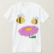 Um design bonito de duas abelhas pairando sobre uma flor rosa. Esta é uma design maravilhosa que certamente trará um sorriso à sua cara. Perfeito para uma grande variedade de produtos, você se apaixonará por ela. Estas duas abelhas e uma flor parecem excelentes nesta camiseta masculina. Perfeito para si mesmo ou como presente