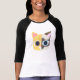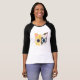 Camiseta feminina mangas raglan 3/4 da Bella+Canvas, Branco/Preto, Adulto G