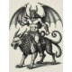 Astaroth, o Grande Duque do Inferno, é representado como uma união assombrosa de intelecto e instinto. Coroado e composto acima, mas fundido a uma forma agachada e bestial abaixo, a figura incorpora preguiça, tentação e dualidade em uma gravura alegórica sombria.