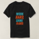 O design de t-shirt apresenta a inspiradora frase "Duro de trabalho, Duro brilhante" numa letra vibrante e multicolor. O texto é arrojado e atraente, destacando-se contra um fundo amarelo brilhante. O design transmite uma mensagem de motivação, perseverança e recompensa, inspirando os usuários a se empenharem e colherem os benefícios.