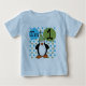 Camiseta, bodysuits, ímãs, bolsas, e mais do pinguim do aniversário do bebê o primeiros com o pinguim que veste um chapéu, balões e bolinhas de azul e de verde, e texto do partido que me lê são 1.