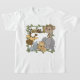 T-shirt dos animais da selva do bebê, canecas, bodysuits, cartões, etiquetas, sacolas, e outros roupa e presentes animais da selva que caracterizam um macaco, um elefante, um girafa, um leão, e um hipopótamo.