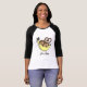 Camiseta feminina mangas raglan 3/4 da Bella+Canvas, Branco/Preto, Adulto G
