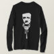 O retrato simples de Edgar Allan Poe com parte inferior, preto & branco do gotejamento em t-shirt escuros, sua e os presentes, amarelo/azul em vestuários claros.