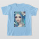 Bonito garota com flores no cabelo azul. Lindos olhos azuis com arte de fantasia de conto de fadas de pele pálida.