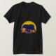 Camisa de elefantes sunset para elefantes e amantes de os animais. Possui uma silhueta de um elefante-mãe com seu bebê andando no pôr do sol. São roxas azuis com contorno branco.