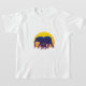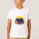 Camisa de elefantes sunset para elefantes e amantes de os animais. Possui uma silhueta de um elefante-mãe com seu bebê andando no pôr do sol. São roxas azuis com contorno branco.