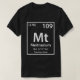Um design Meitnerium. Meitnerium é um elemento químico com o símbolo Mt e o número atômico 109. Trata-se de um elemento sintético extremamente radioativo (um elemento não encontrado na natureza que pode ser criado em laboratório). O isótopo mais estável conhecido, meitnerium-278, tem meia-vida de 7,6 segundos. A estética geral do design é nítida e minimalista, com foco na simplicidade e elegância. O uso do branco como a cor primária dá ao design uma aparência limpa e fresca, enquanto a fonte e o círculo negros em negrito adicionam contraste e profundidade. É um design versátil que pode ser vestido por homens e mulheres. É perfeito para aqueles que apreciam ciência, tecnologia e inovação, e que querem expressar sua paixão por esses campos através de suas roupas. Vestido casualmente ou vestido, este design deve fazer uma declaração e provocar uma conversa.