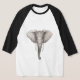 Camiseta Básica, Mangas Raglan 3/4, Branco/Preto, Adulto M