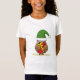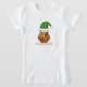 Uma ilustração de uma coruja tímida e feliz com chapéu de Santa verde e presença vermelha com fita amarela. Este design de desenho bonitinho é uma ideia presente para amantes de corujas, amantes de pássaros, e amantes de filmes mágicos ou fantasias. Você está animado para receber seu presente no Natal?