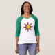 Camiseta feminina mangas raglan 3/4 da Bella+Canvas, Branco/Cor-de-rosa, Adulto P