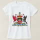 A casaco de armas de Trinidad e Tobago foi projetada por um comitê formado em 1962 para selecionar os símbolos que seriam representativos das pessoas de Trinidad e Tobago. A crista da palmeira no topo da casaco de armas foi tirada do casaco de armas de Tobago antes de ser unida à união política com Trinidad. O escudo tem as mesmas cores (preto, vermelho e branco) que a bandeira e o carregar do país têm o mesmo significado. Os navios de ouro representam os três navios que Cristóvão Colombo usou em sua viagem. Os dois pássaros no escudo são beija-flores. Trinidade é às vezes chamada de "Terra do Hummingbird" porque 18 espécies diferentes de beija-flor foram registradas na ilha. Acredita-se também que "Terra do Hummingbird" tenha sido o nome ameríndio de Trinidade. As duas aves maiores são o Scarlet Ibis (à esquerda) e o Cócrico (à direita), as aves nacionais de Trinidad e Tobago. Abaixo do Scarlet Ibis estão três colinas, representando as Colinas de Trinidade no sul de Trinidade, que, acredita-se, convenceu Columbus a nomear a ilha depois da Santa Trindade. A ascensão da ilha fora das águas sob o Cócrico representa Tobago. Abaixo desses pássaros está o lema da nação, "Juntos Aspiramos, Juntos Alcançamos."