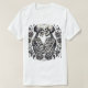Uma ilustração romântica e artística de dois esqueletos abraçando-se, cercada por elementos florais intricadamente detalhados. O design apresenta uma elegante linhagem preto-e-branco, simbolizando amor eterno e conexão além das fronteiras da vida. Perfeito para expressar temas de amor, eternidade e beleza no macabro.